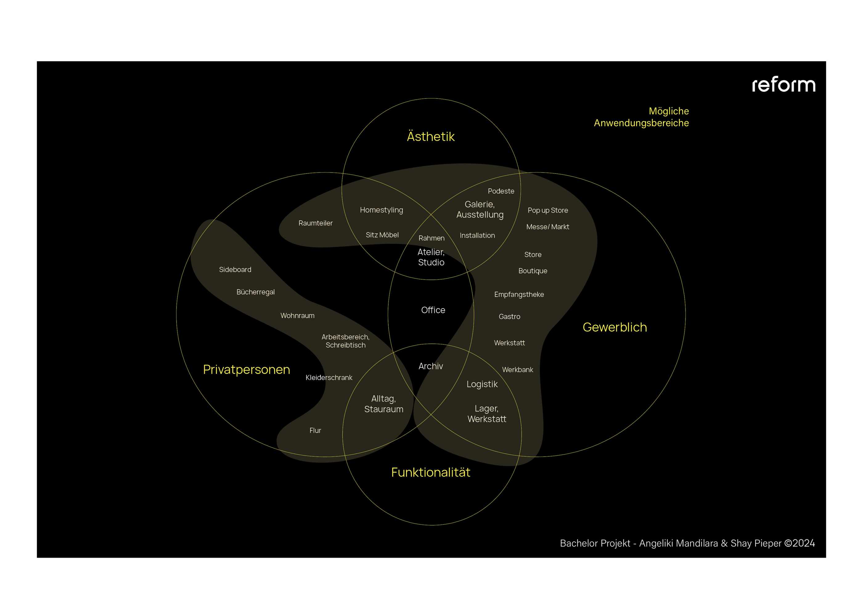 reform wurde so Konzipiert, dass es nicht nur für Private Anwendungen, vielfältige Möglichkeiten bietet. Sondern genau so gut auch für Verschiedene Gewerbliche Bereiche Ästhetische und Flexible Lösungen Bietet.